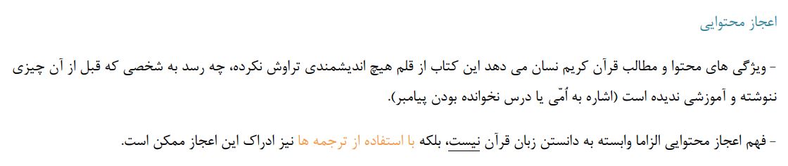 ۴) «وَ مَا كُنْتَ تَتْلُو مِنْ قَبْلِهِ مِنْ كِتَابٍ وَ لَا تَخُطُّهُ بِيَمِينِكَ . . . » - «...لِئَلَّا يَكُونَ لِلنَّاسِ عَلَى اللَّهِ حُجَّةٌ»