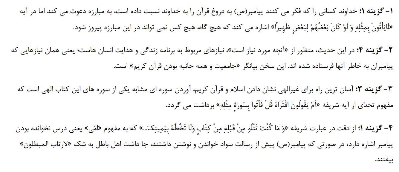 ۳. کدام پیشنهاد از سوی مبدا وحی، آسان ترین راه برای غیرالهی نشان دادن اسلام و قرآن کریم می باشد و کدام آیه شریفه بر این موضوع تاکید می ورزد؟ (سراسری تجربی ۹۹)