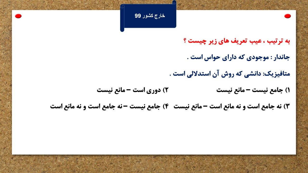 💯 نکته : جامع و مانع بودن اصولاً مربوط به تعریف مفهومی می باشد. 💯
