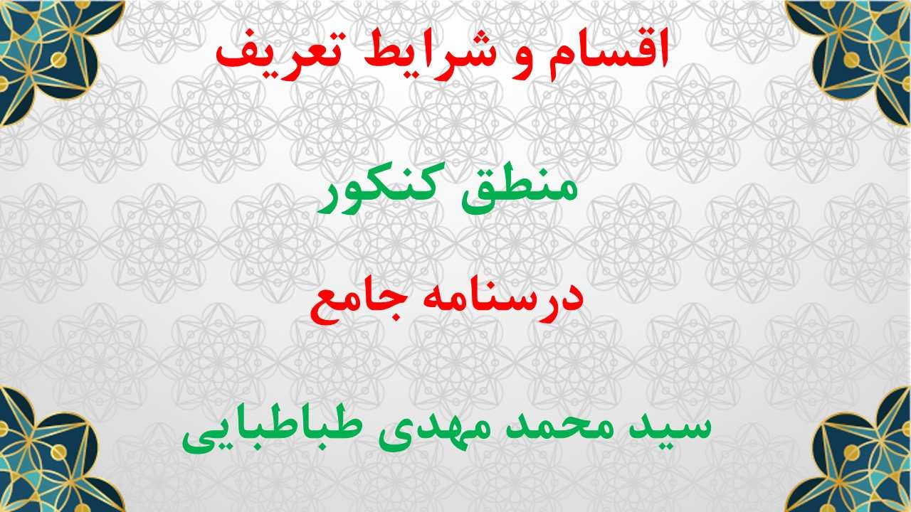 1- آیا هر مجهولی تعریف است؟ بله ، پس جامع هست، نه ، پس جامع نیست.