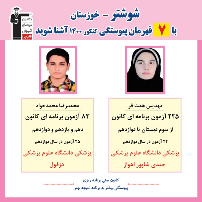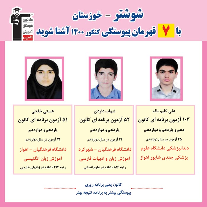 با قهرمانان پیوستگی شهر شوشتر در کنکور 1400 آشنا شوید