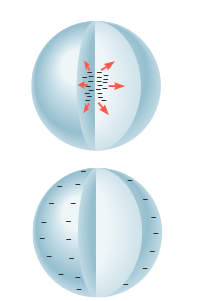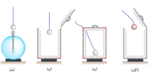 - اگر یک گلوله را داخل یک ظرف رسانا بدون تماس نماییم در سطح خارجی بار همنام گلوله و در سطح داخلی بار مخالف گلوله الق یشود و اگرگلوله را خارج کنیم جسم به حالت اول و بدون بار بازمیگردد.