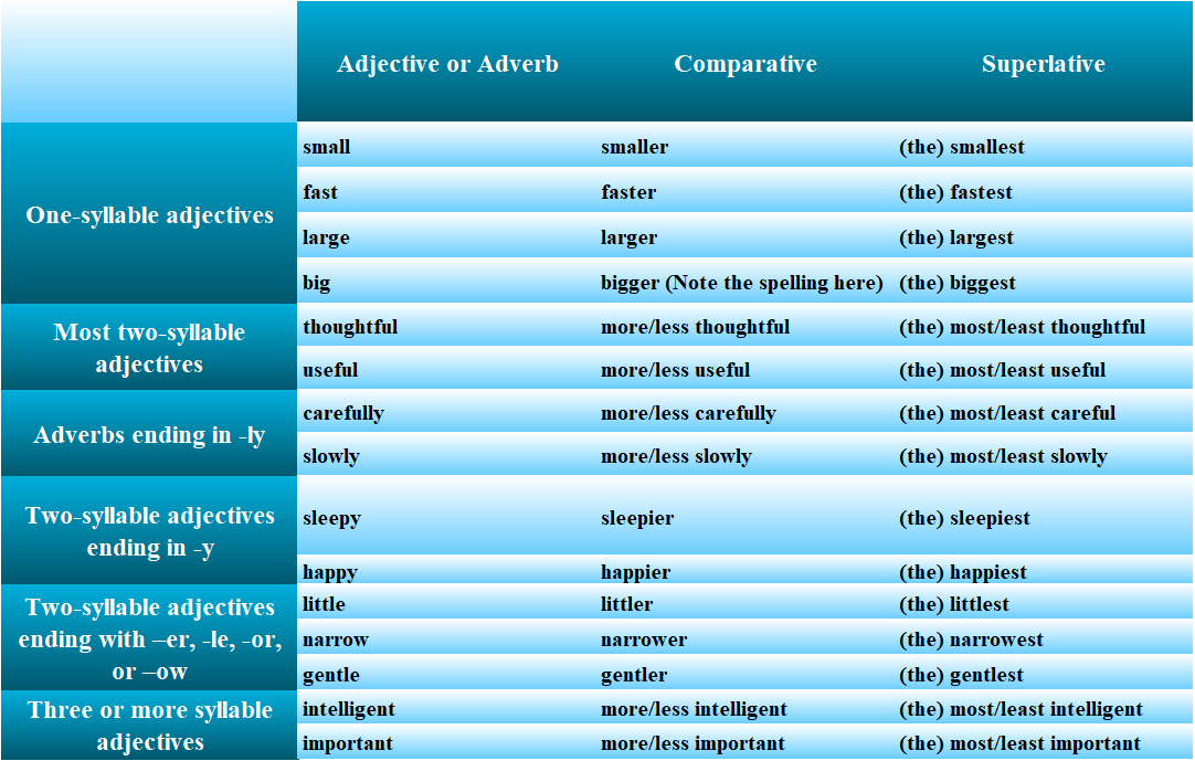 برای مقایسه عملکرد دو استراتژی برای انجام یک کار است. قبل از جواب چند جدول برای مقایسه دو چیز (comparative) و مقایسه چند چیز (superlative) آمده است.