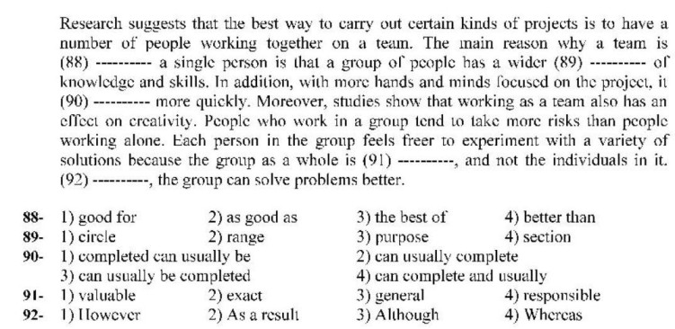 در دو جمله قبل متوجه می شویم که مردمی که گروهی کار می کنند تمایل دارند بیشتر خطر کنند. و این دسته از مردم احساس آزادی بیشتری دارند که جواب های مختلفی را امتحان کنند، به این دلیل است که گروه برای این عواقب این انتخاب ها مسئولیت دارد. پس گزینه 4 درست است.