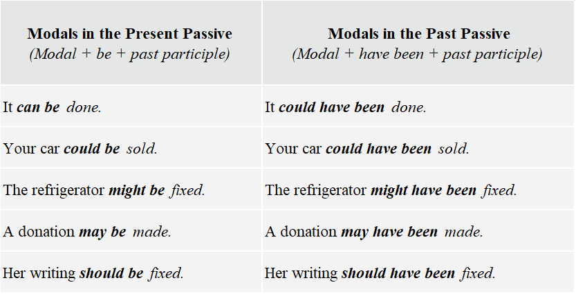 و در جدول زیر Modal Verbs در جمله مجهول گذشته به کار رفته اند: