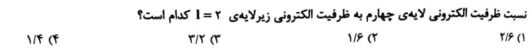 ظرفیت لایه اصلی 4 برابر 32 و ظرفیت زیرلایه با عدد کوانتومی فرعی 2 برابر 10 می باشد نسبت این دو برابر 3.2 می باشد
