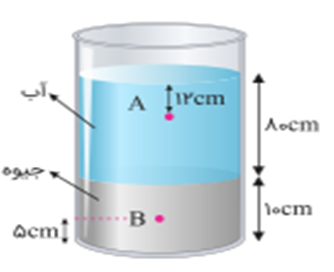 سوال 1 - در شکل زیر، آب و جیوه در حال تعادل هستند. اختلاف فشار بین دو نقطۀ A و B چند سانتیمتر جیوه است؟ آزمون های کانون