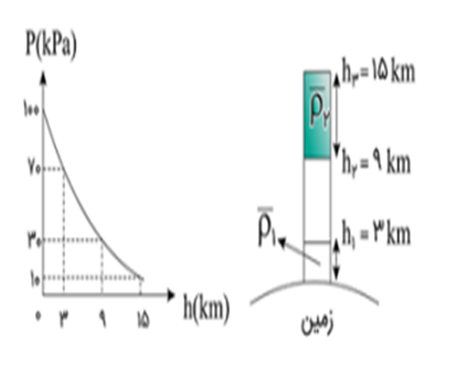 سوال 4 - نمودار زیر تغرات فشار هوا برحسب ارتفاع از سطح زمین را نشان میدهد. بر این اساس نسبت چگالی متوسط هوا تا ارتفاع 3 کیلومتری از سطح زمین، چندبرابر چگالی متوسط هوا، بین لایه های 9 تا 15 کیلومتری است ؟ آزمون های کانون