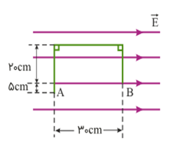 سوال 1 - در میدان الکتریکی یکنواخت 100000 = E ، بار نقطه ای q = - 5 میکروکولن از طریق مسیر نشان داده شده از نقطۀ A