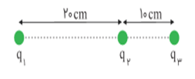 سوال 4 - در شکل برآیند نیروهای وارد بر هریک از بارهای نقطه ای برابر صفر است. (q3 / q2) کدام است ؟ کنکور سراسری