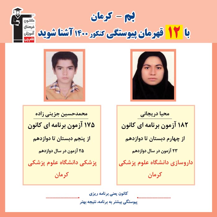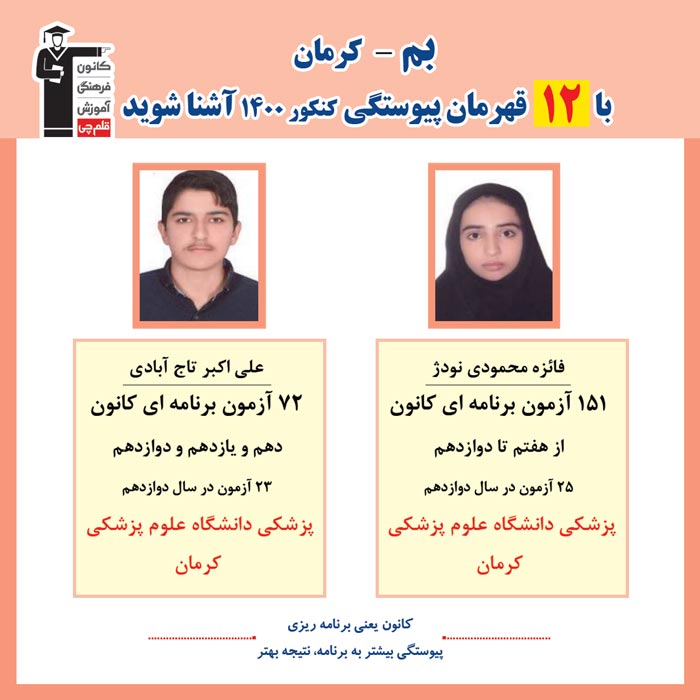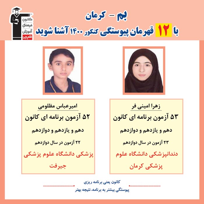 با 12 نفر قهرمانان پیوستگی بم در کنکور 1400 آشنا شوید