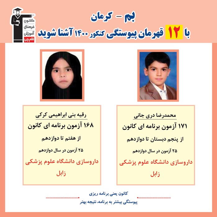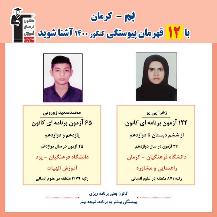 با قهرمانان پیوستگی شهر بم در کنکور 1400 آشنا شوید