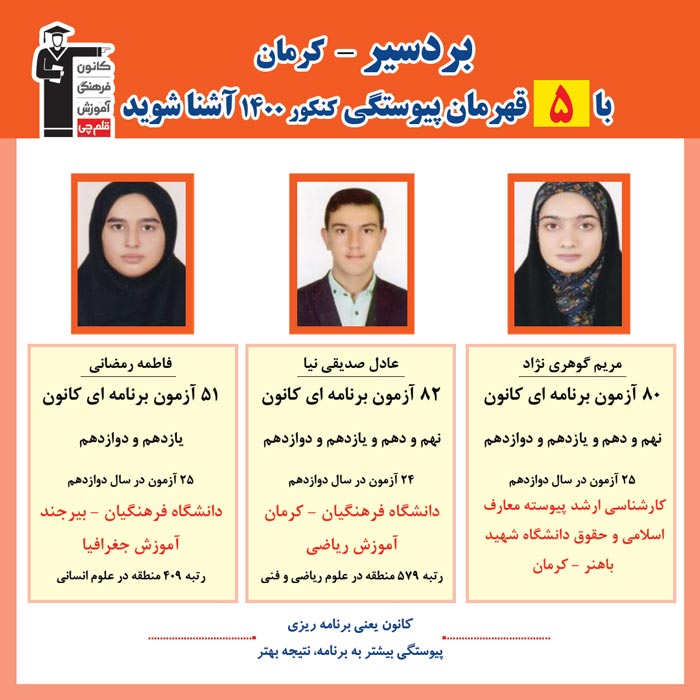 با 5 نفر قهرمانان پیوستگی بردسیر در کنکور 1400 آشنا شوید