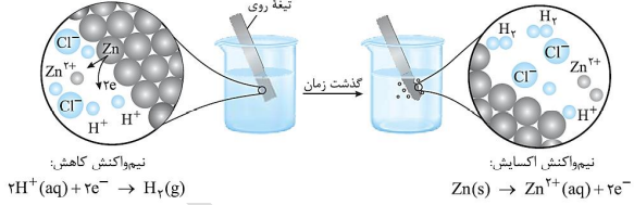 • شیمی دانها هریک از فرایندهای گرفتن و از دست دادن الکترون را با یک نیمواکنش نمایش میدهند که هر نیم واکنش باید از لحاظ جرم(تعداد اتم ها) و بار الکتریکی موازنه باشد.