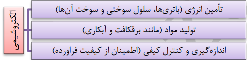 • دو رکن اساسی تحقق فناوری های وابسته به الکتروشیمی، موارد روبرو است: 1 -دستیابی به مواد مناسب 2 -تأمین انرژی