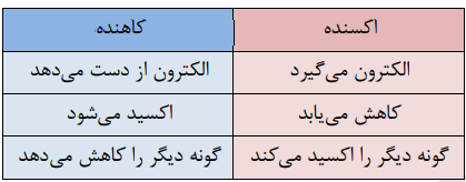 • در واکنش های الکتروشیمیایی، گرفتن الکترون را کاهش و از دست دادن الکترون را اکسایش می نامیم. در این شرایط، گونهای که الکترون از دست می دهد را کاهنده و گونهای که الکترون دریافت می کند را اکسنده می نامیم. آند الکترودی است که در آن نیم واکنش اکسایش انجام شده و کاتد الکترودی است که در آن نیم واکنش کاهش رخ میدهد.
