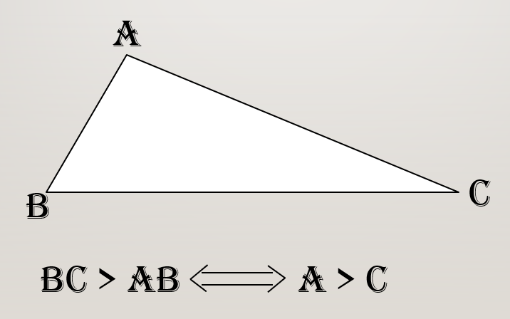 اگر در مثلثی دو ضلع نابرابر باشند، زاویه رو به رو به ضلع بزرگ تر ، بزرگ تر است از زاویه رو به رو به ضلع کوچک تر و بالعکس.