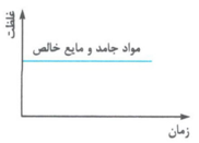 توجه: فرم کلی مقدار – زمان واکنش دهنده ها و فرآورده های جامد و مایع خالص، مانند شکل های قبل است، اما گفتیم که غلظت مواد جامد و مایع خالص همواره مقدار ثابتی می باشد؛ بنابراین نمودار غلظت – زمان برای این مواد به صورت رو به رو خواهد بود: