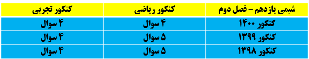 بودجه بندی فصل دوم شیمی 2 در کنکور سال های اخیر