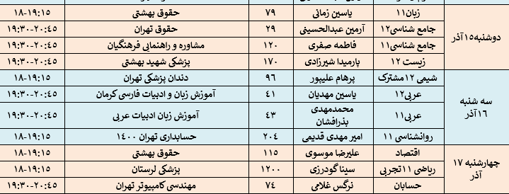 برگذاری همایشهای آنلاین و رایگان رتبههای برتر کانون جهت آمادگی آزمون ۱۹ آذر . در این همایش ها رتبه های برتر کنکور و پشتیبانان ویژه کانون مطالب درسی را بر اساس برنامه زمانبندی شده تدریس می کنند.