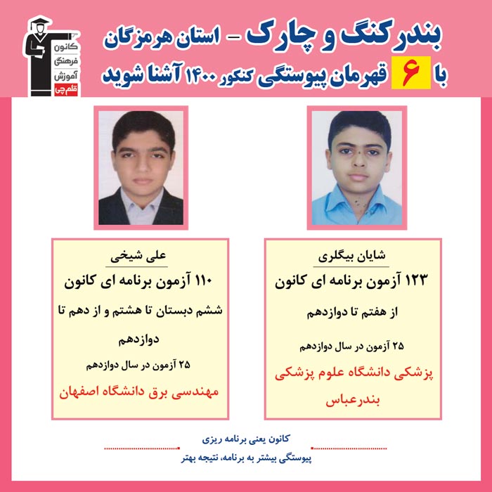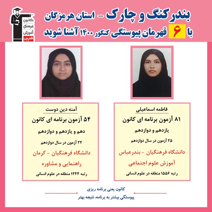 با 6 نفر قهرمانان پیوستگی بندرکنگ وچارک در کنکور1400 آشنا شوید