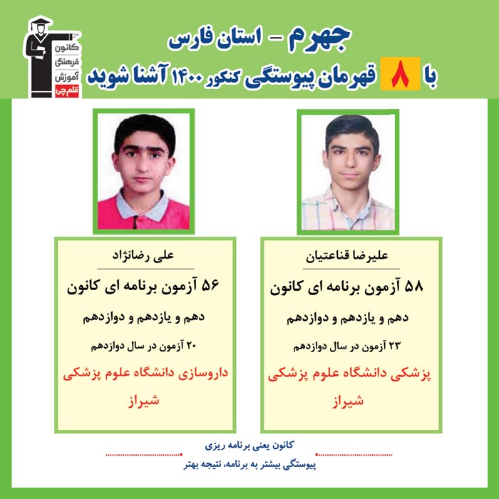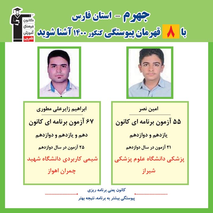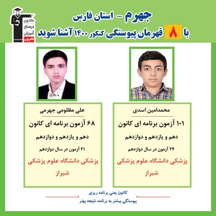 با قهرمانان پیوستگی شهر جهرم در کنکور 1400 آشنا شوید
