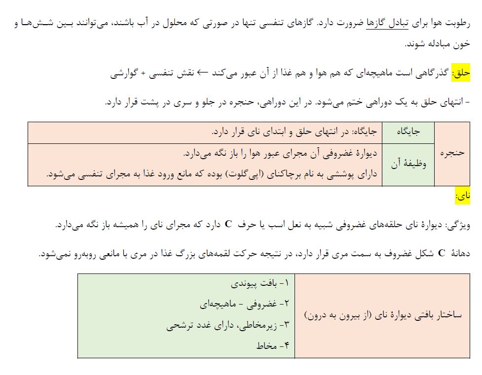 تبادلات گازی -زیست دهم - درسنامه - فاطمه صمدی