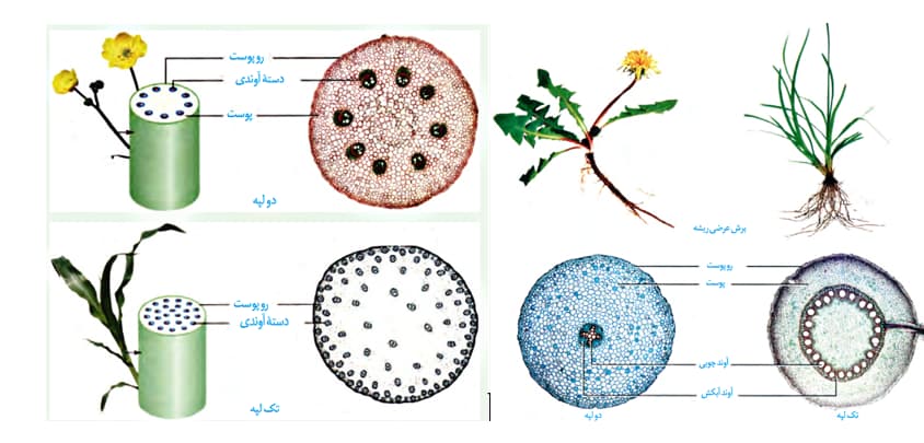 *در گیاه علفی تک لپه تعداد دستههای آوندی در سمت خارجی ساقه بیشتر از سمت داخل است.