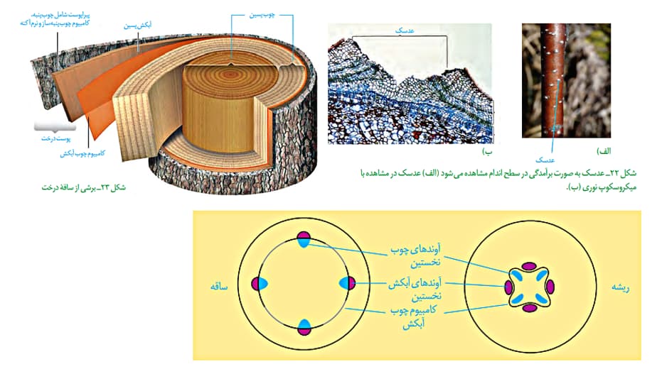 *کامبیوم آوند ساز در زیر پوست درخت (نه درون آن) قرار دارد.