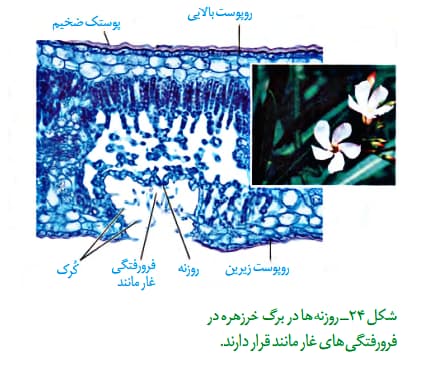 *یاخته های روپوست در سطح بالایی برگ خرزهره با حفره هوایی درون برگ تماسی ندارند.