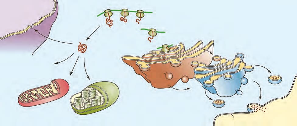 - میتوکندری(راکیزه) و کلروپلاست(سبزدیسه) علاوه بر پروتئین هایی که خود میسازند میتوانند از سیتوپلاسم نیز پروتئین دریافت کنند.
