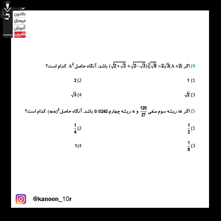 برای حل سوالات بیشتر، حتما تستهای کتاب آبی و سه سطحی ریاضی دهم را تمرین کنید.
