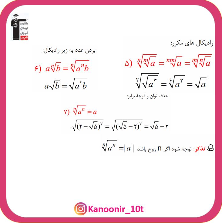 درسنامه ریاضی مبحث مثلثات و عبارتهای جبری