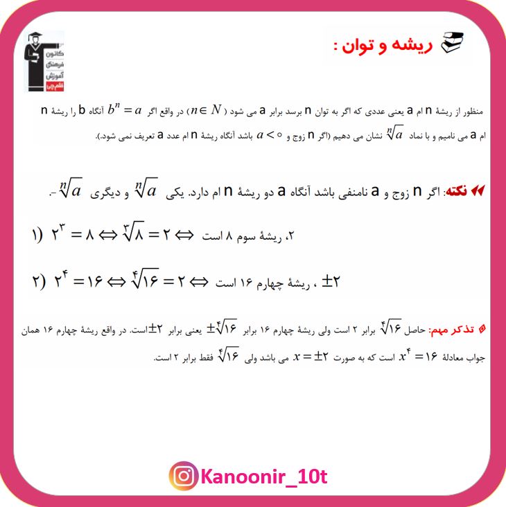 درسنامه ریاضی مثلثات و عبارتهای جبری و توان و .... به صورت درسنامه پیشروی آزمون مناسب آزمون 19 آذر