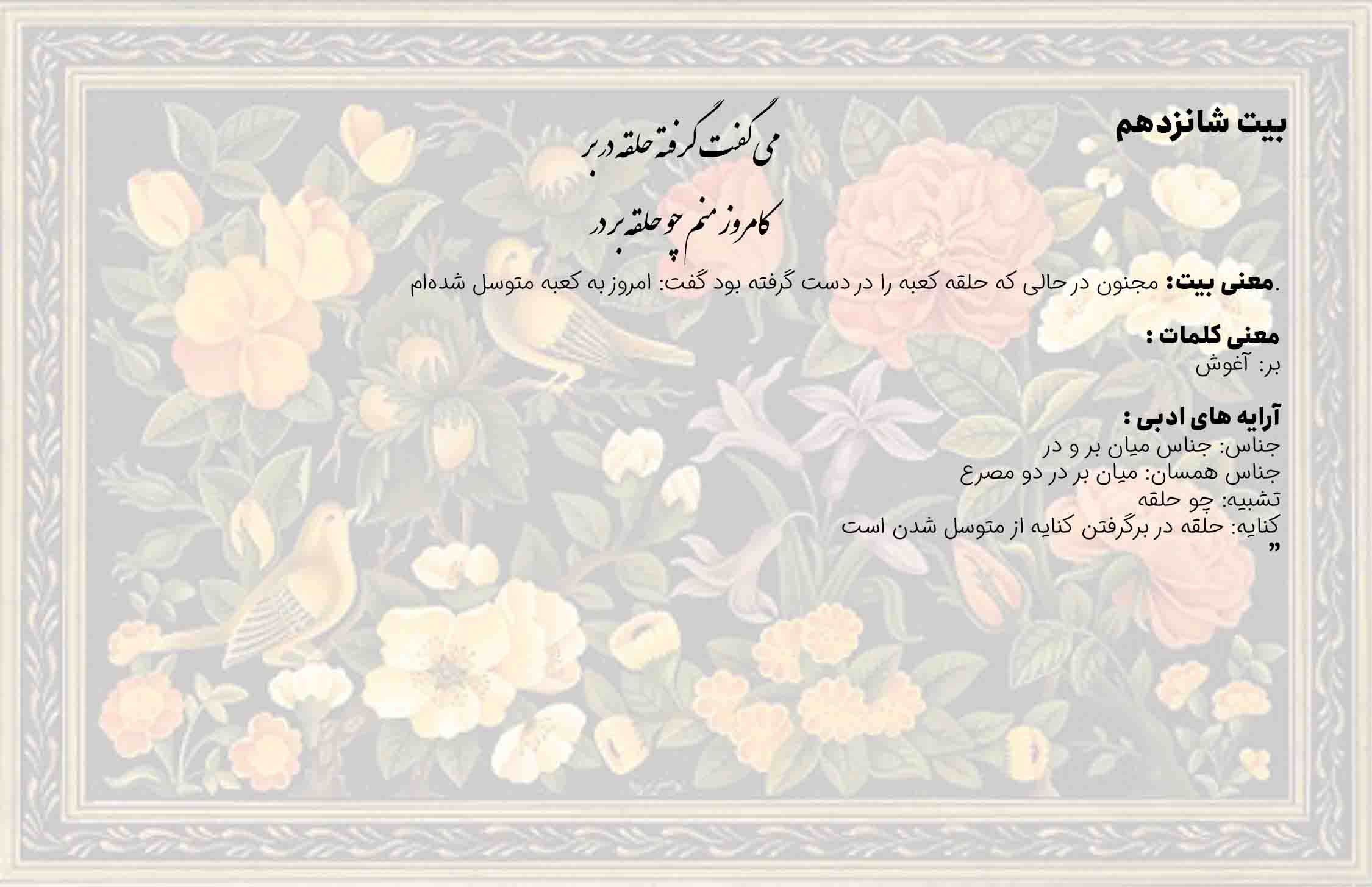 2 ) از جای چو مار حلقه بر جست / در حلقه زلف کعبه زد دست