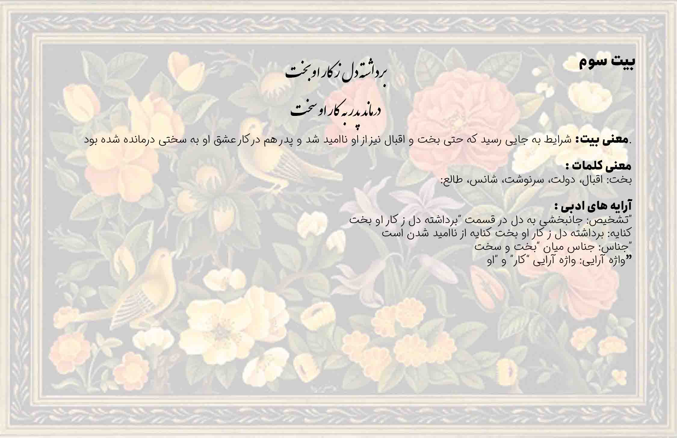 3 ) کز عشق به غایتی رسانم / کاو ماند اگر چه من نمانم