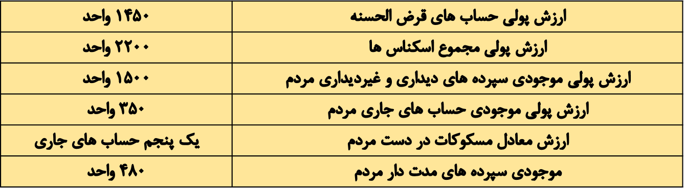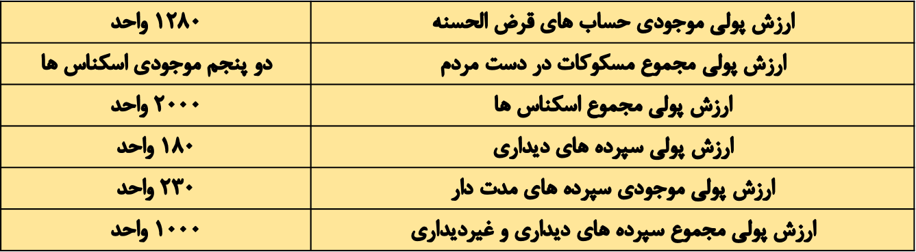 🔵 ارزش پولی موجودی حساب های قرض الحسنه + سپرده غیردیداری = شبه پول 🔵