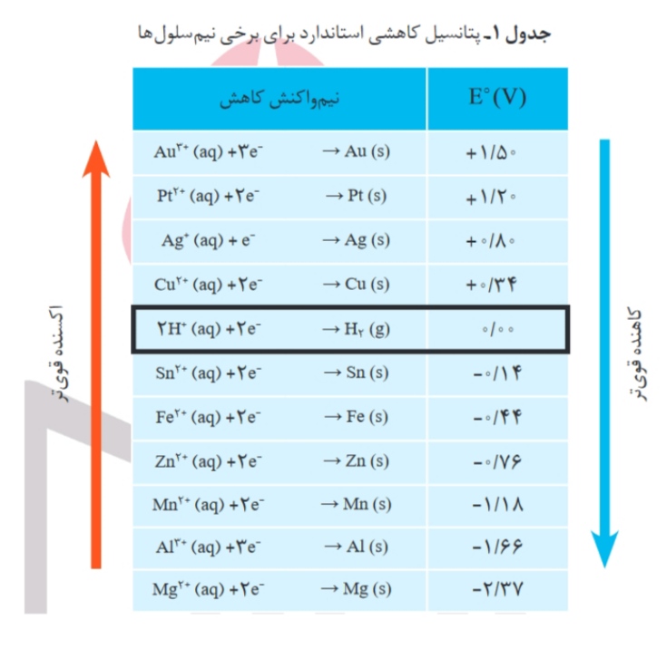 بنابراین وقتی میتوانیم از یک سلول گالوانی بیشترین ولتاژ را بگیریم که مقدار جبری دو فلز از همدیگر بیشترین اختلاف را داشته باشد .