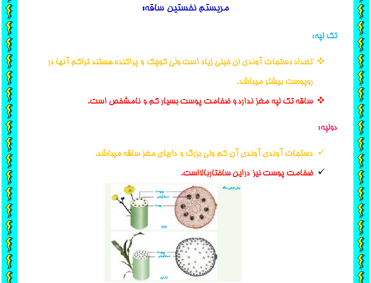4)دروسط استوانه اوندي تك لپه اي ها آوندهاي چوبي قطورتر قرار دارند.