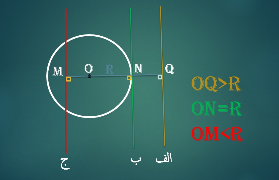 یک خط و یک دایره، نسبت به هم یکی از 3 وضعیت رو به رو را دارند.