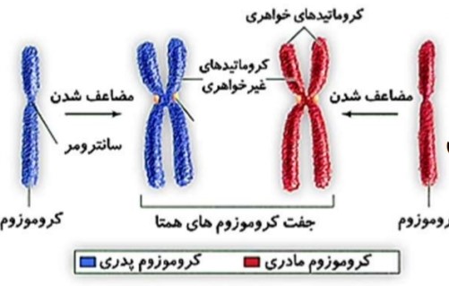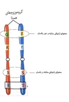 نكته: كروموزوم هاي همتا از نظر اندازه، شكل و محل سانترومر مشابه بوده و داراي محتواي ژنتيكي مشابه هستند. كه اين محتواي ژنتيكي ميتواند يكسان يا متفاوت باشد.