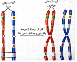 نکته مهم: هر كروموزوم مضاعف داراي دو كروماتيد خواهري بوده كه اين دو كروماتيد كاملا از هر نظر (شكل و اندازه و محتواي ژنتيكي) یکسان می شوند.