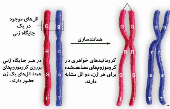الف) محتواي ژنتيكي يكسان يعني اللهاي موجود بر روي كروموزومهاي همتا، يكسان باشند: