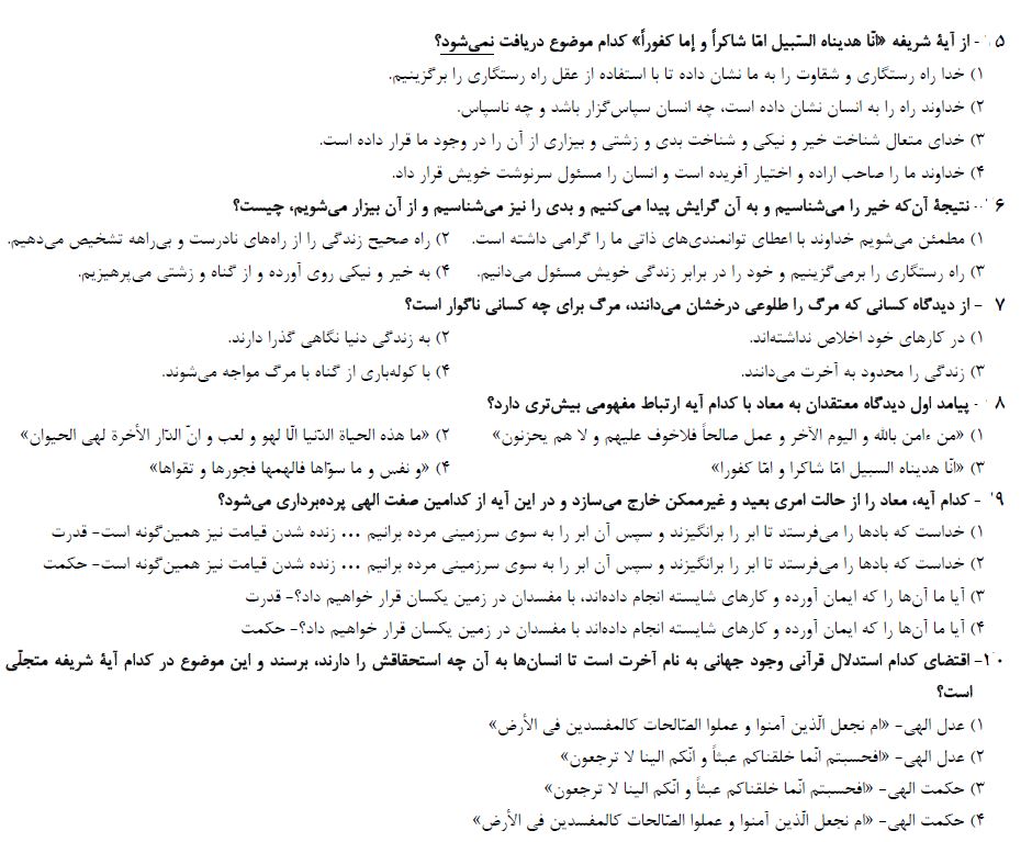 10 سوال دین و زندگی دهم که در ادامه برای شما قرار دادیم، از مباحث آزمون 19 آذر بوده و برای آمادگی بیشتر شما در این آزمون توسط فاطمه احدزاده رتبه 373 رشته ریاضی سال 95 انتخاب و برای شما قرار داده شده است. بعد از مطالعه ی کتاب درسی و درسنامه های آمادگی آزمون 19 آذر، توصیه میکنم حتما این سوالات را حل کرده و جواب های خود را با پاسخنامه بررسی کنید.