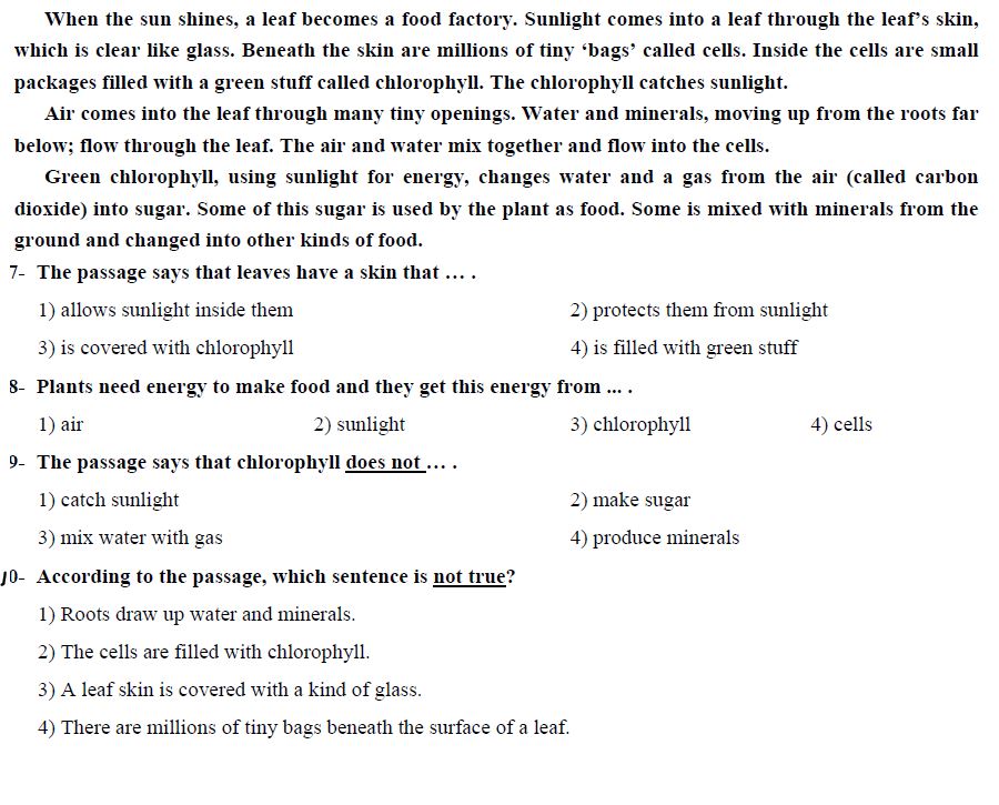 10 سوال زبان انگلیسی دهم که در ادامه برای شما قرار دادیم، از مباحث آزمون 19 آذر بوده و برای آمادگی بیشتر شما در این آزمون توسط فاطمه احدزاده رتبه 373 رشته ریاضی سال 95 انتخاب و برای شما قرار داده شده است. بعد از مطالعه ی کتاب درسی و درسنامه های آمادگی آزمون 19 آذر، توصیه میکنم حتما این سوالات را حل کرده و جواب های خود را با پاسخنامه بررسی کنید.