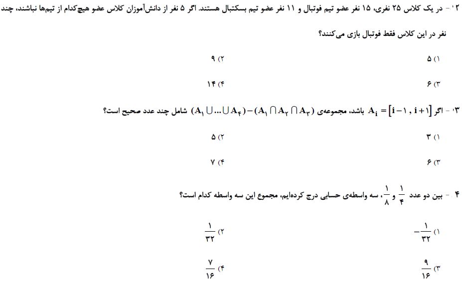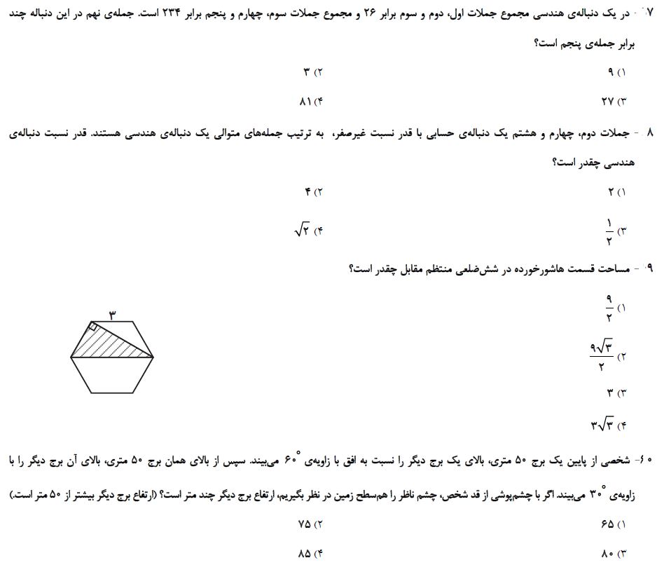 10 سوال ریاضی دهم که در ادامه برای شما قرار دادیم، جمع بندی مباحث آزمون 7 بهمن بوده و برای آمادگی بیشتر شما در این آزمون توسط فاطمه احدزاده رتبه 373 رشته ریاضی سال 95 انتخاب و برای شما قرار داده شده است. بعد از مطالعه ی کتاب درسی و درسنامه های آمادگی آزمون 7 بهمن، توصیه میکنم حتما این سوالات را حل کرده و جواب های خود را با پاسخنامه بررسی کنید.