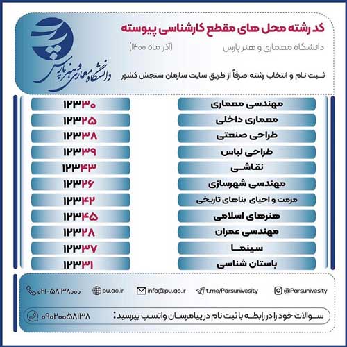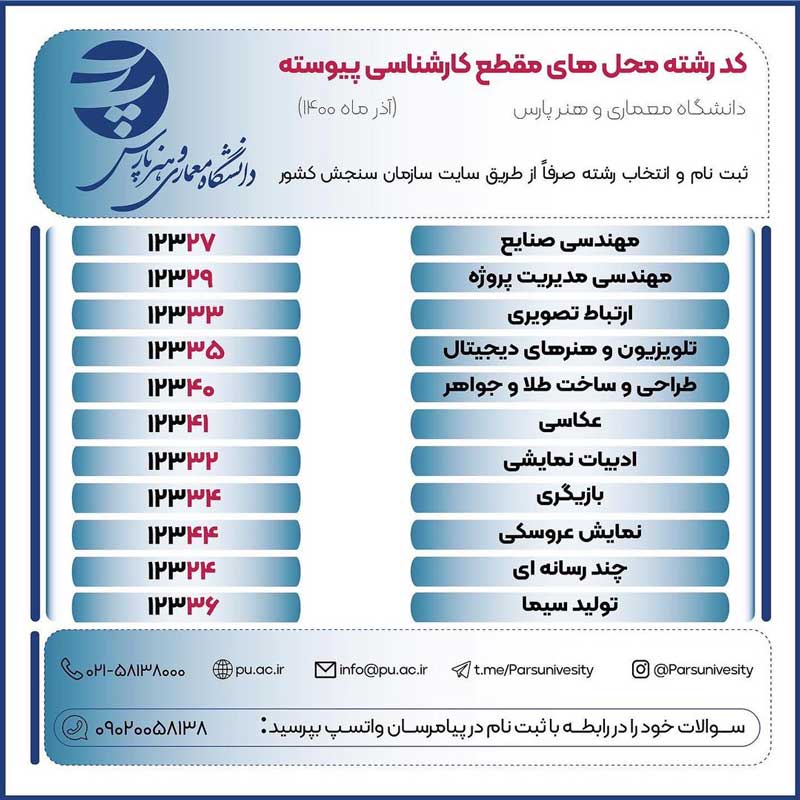 براى كسب اطلاعات بيشتر به سايت دانشگاه پارس مراجعه فرمایید.