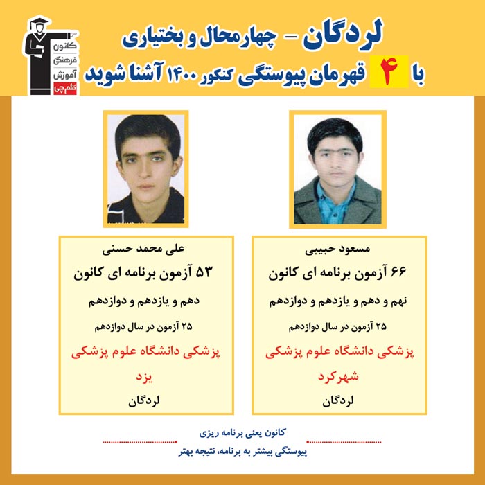 با قهرمانان پیوستگی شهر لردگان در کنکور 1400 آشنا شوید