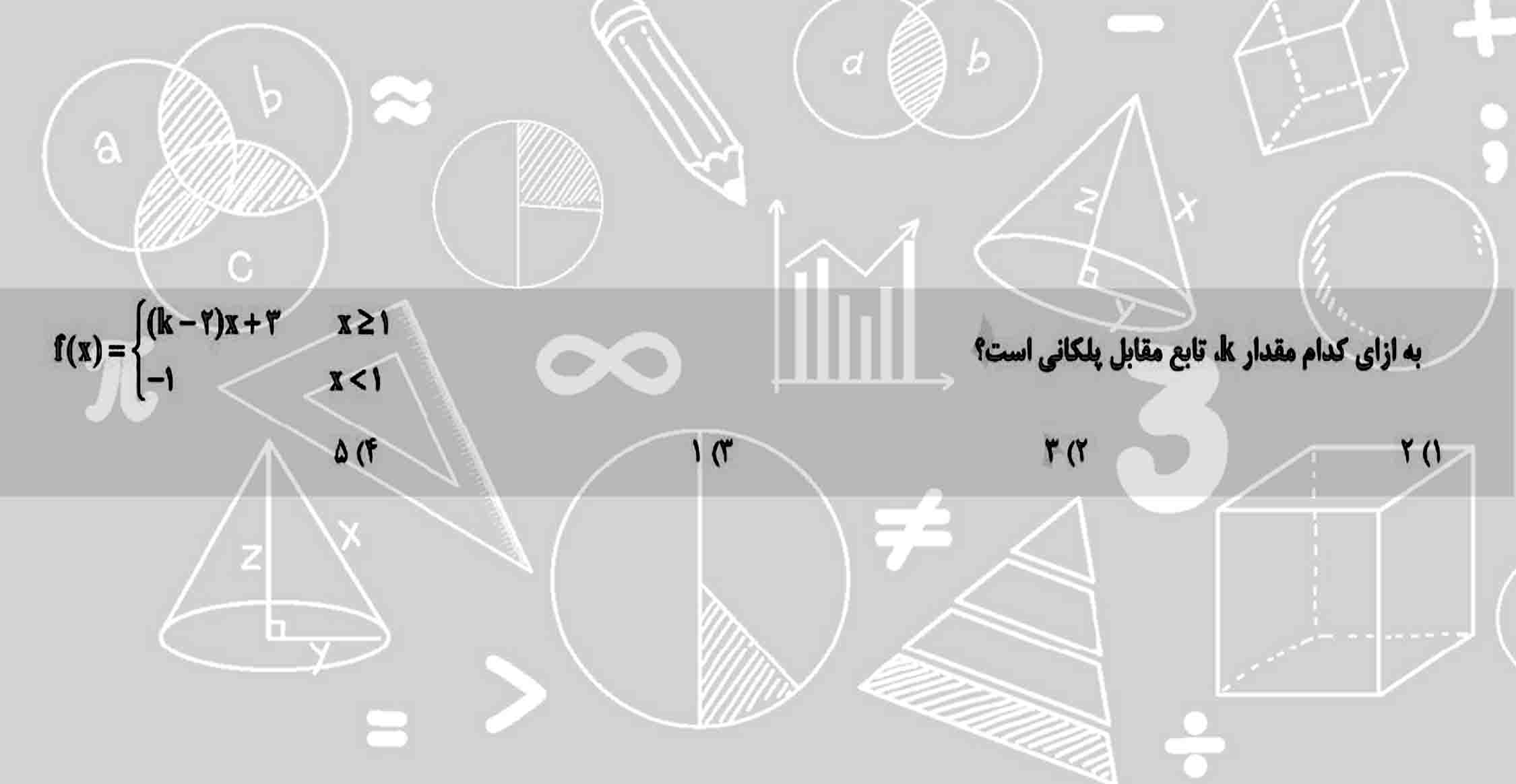 فرض سوال این است که این تابع پلکانی است. می دانیم که تابع پلکانی معادله ندارد. پس متغیر x باید صفر شود. به ازای k=1 متغیر x صفر می شود.