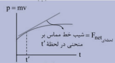 شیب خط مماس بر نمودار تکانه-زمان برابر اندازه نیروی لحظه ای است.